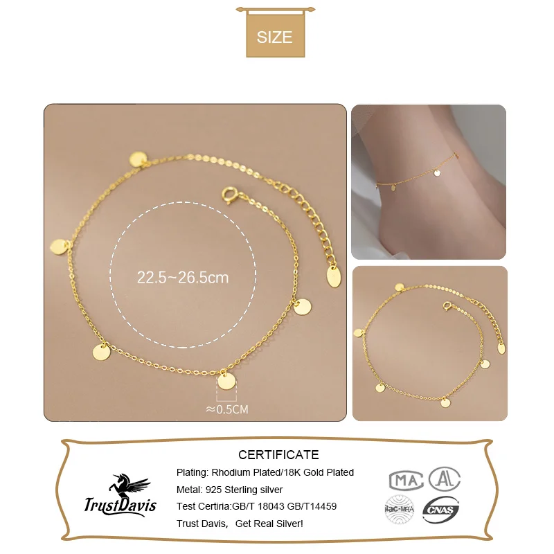 Trustdavis Популярные настоящие искусственные серебряные, золотые, милые браслеты на ногу с кисточками, цепочка для женщин, лучший друг, изысканные ювелирные изделия, подарок DA2353