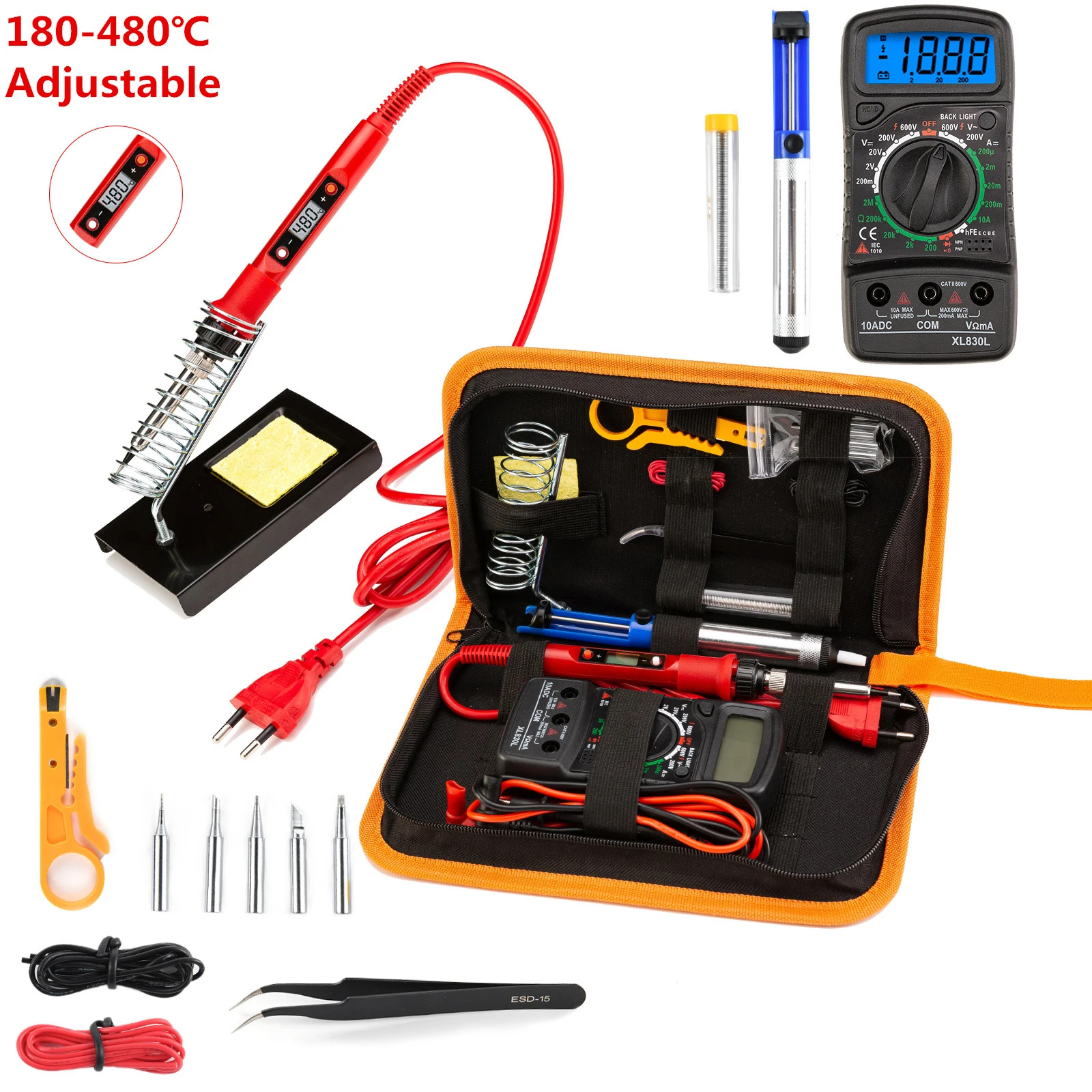 Наборы для электрического паяльника, 80 Вт, 220 В, ЖК-дисплей, цифровой мультиметр с регулируемой температурой, автоматическая Настройка диапазона, Сварочная переделка, Паяльные жала