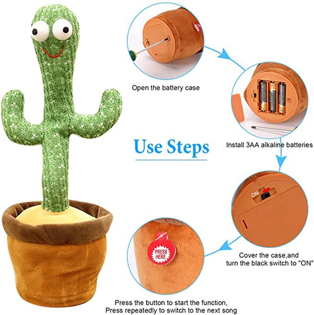 [Применимый случай и идеальный подарок] плюшевая игрушка танцующего кактуса может сиять, записывать, говорить, петь и танцевать. Это лучший подарок на день рождения для детей. Его также можно использовать в качестве украшения комнаты. Веселая музыка и танцы очень подходят для создания приятной атмосферы и проведения вечеринок.