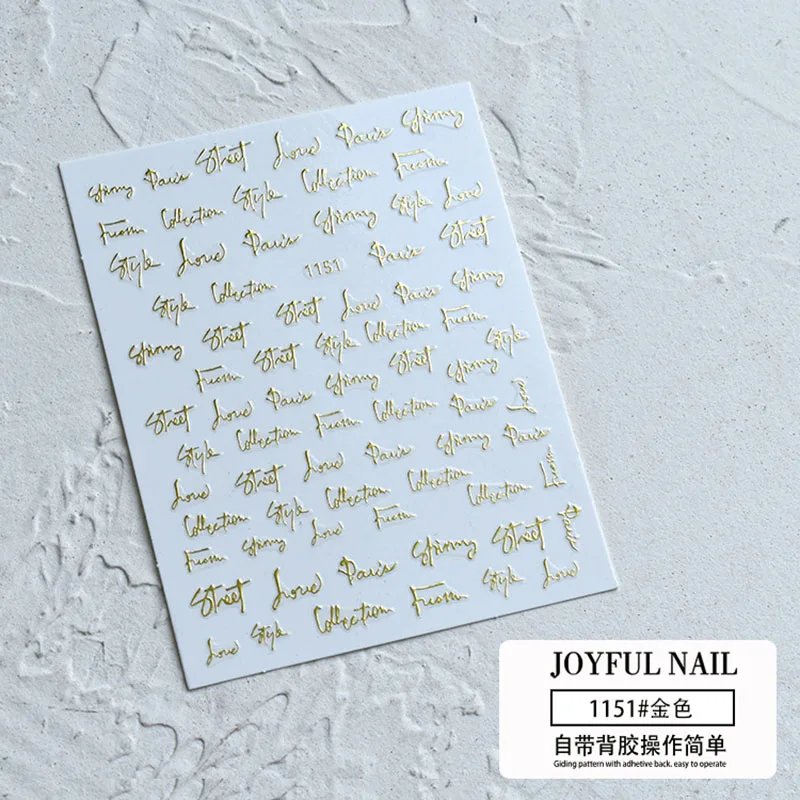 1 шт. лазерная Золотая английская буква слова наклейки для ногтей 3D черная белая серебряная этикетка голографический клей сделай сам наклейка для УФ гель-лака