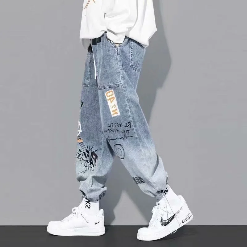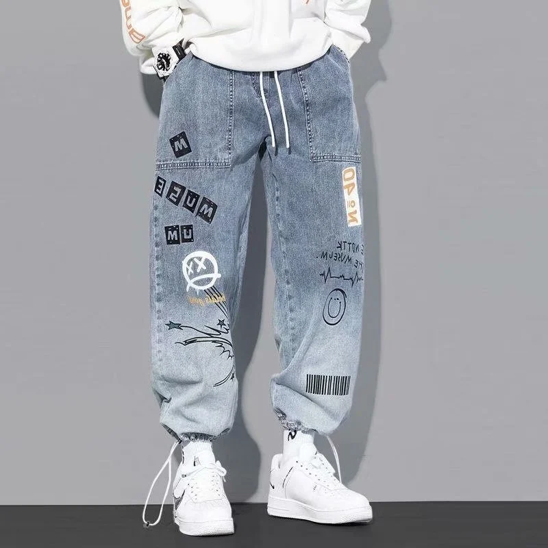 Мужские джинсы, Осенние мешковатые джинсы в стиле хип-хоп с принтом...