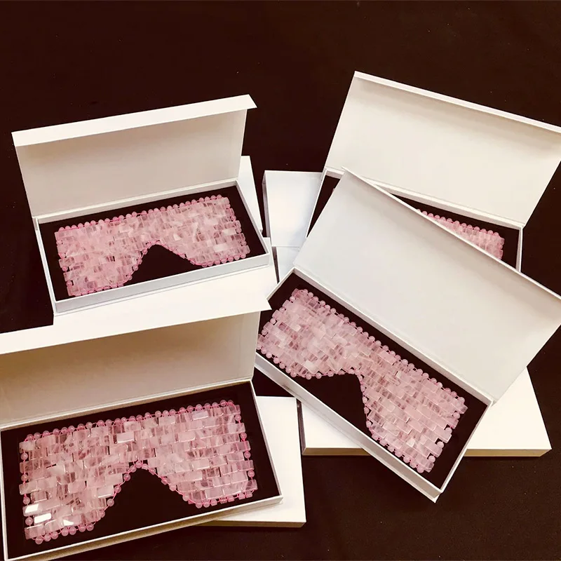 Нефритовая маска для глаз из розового кварца с коробкой, массажер из натурального камня, расслабляющий массаж глаз, холодная терапия, расслабляющая маска для глаз, массаж лица