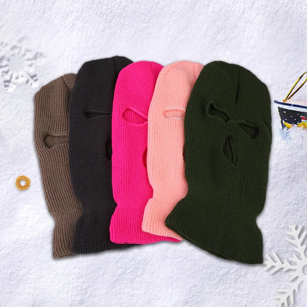 Лыжная маска с полным лицевым покрытием, шапка, 3 отверстия, Балаклава, армейская тактическая CS, ветрозащитная вязаная шапка, зимние теплые шапки унисекс