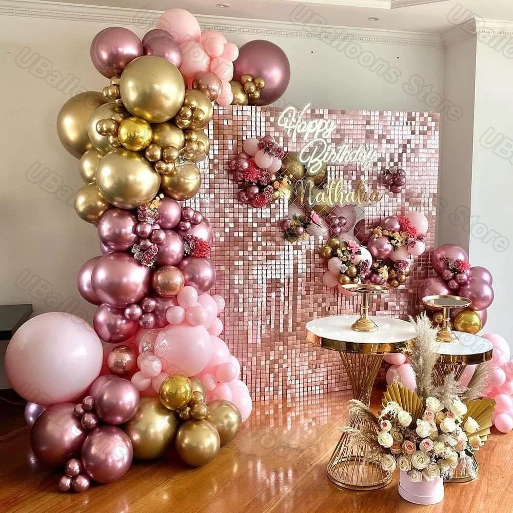 1 комплект Ретро розовые воздушные шары Арка пыльный розовый металлический шар цвета розового золота гирлянда блестящие занавески для свадьбы девичник Вечерние