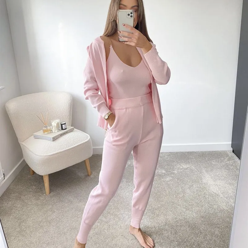 Новый зимний модный женский теплый жилет вязаное пальто + брюки-карандаш комплект из трех предметов розовый женский спортивный костюм Трикотажный костюм брюки костюм