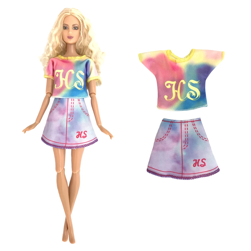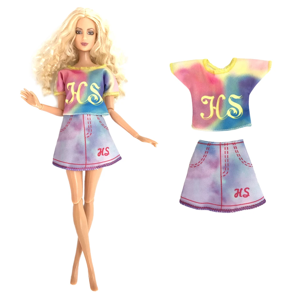 1 комплект, повседневное камуфляжное платье, футболка + мини-юбка Sunshine Girl вечерние аксессуары для кукол Барби, игрушки 292F DZ