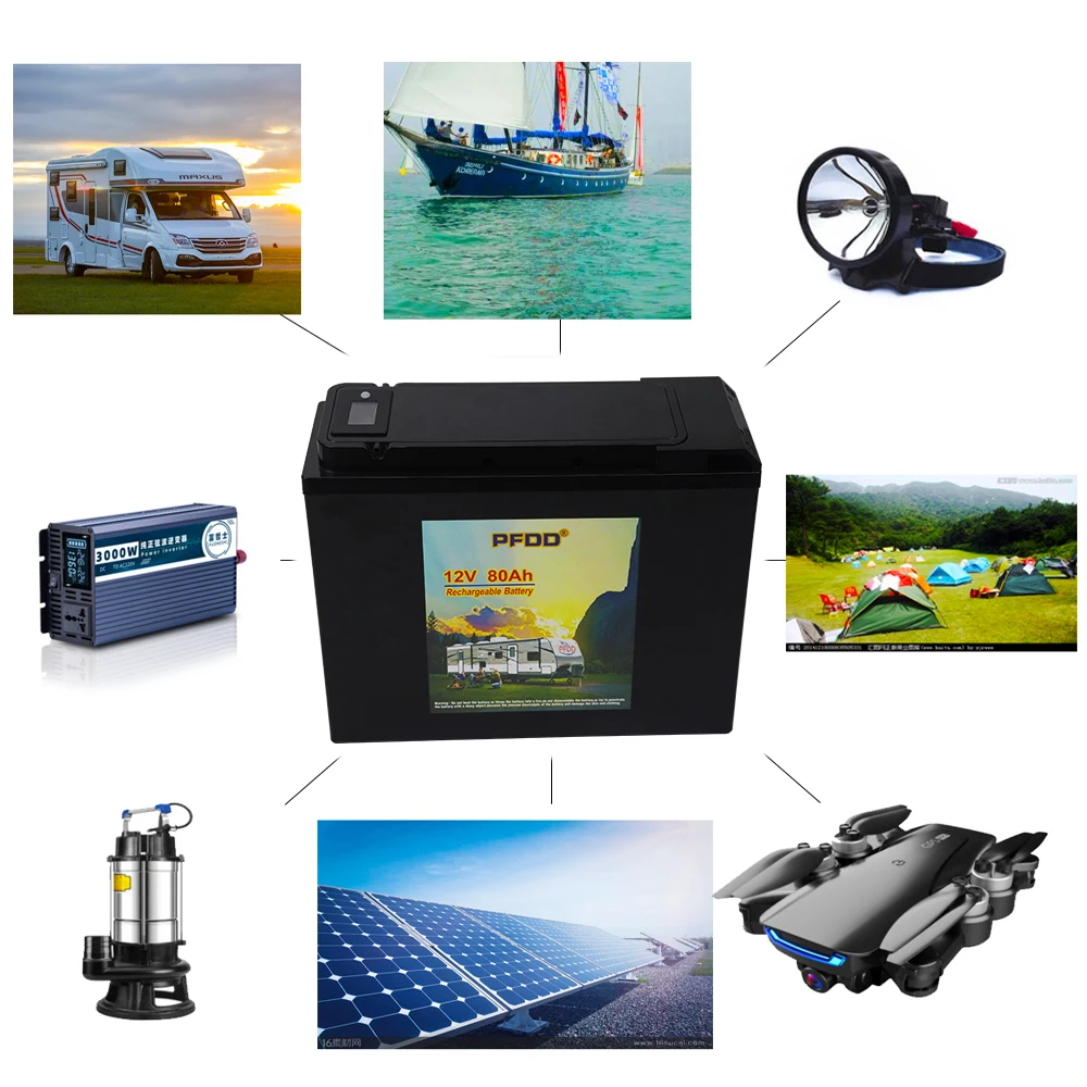 Аккумулятор Lifepo4, 12 В, 80 А ч, 12 В, 80 А ч, водонепроницаемый аккумулятор комплект литий-ионный батарей, аккумуляторы 12 В для инвертора, лодочного мотора