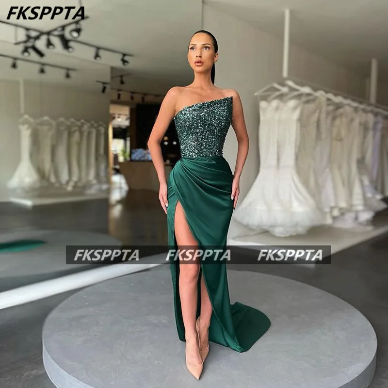 Женское длинное вечернее платье-русалка, темно-зеленое атласное пла...