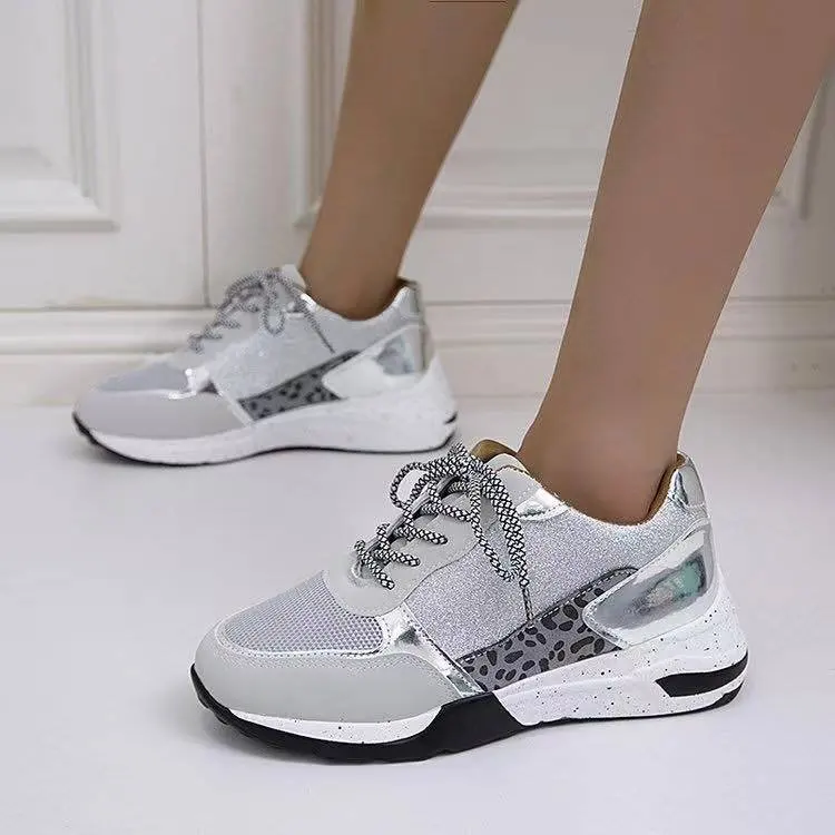 Женские кроссовки для бега, дышащие сетчатые кроссовки с леопардовым принтом, на плоской платформе, для летнего сезона 2021