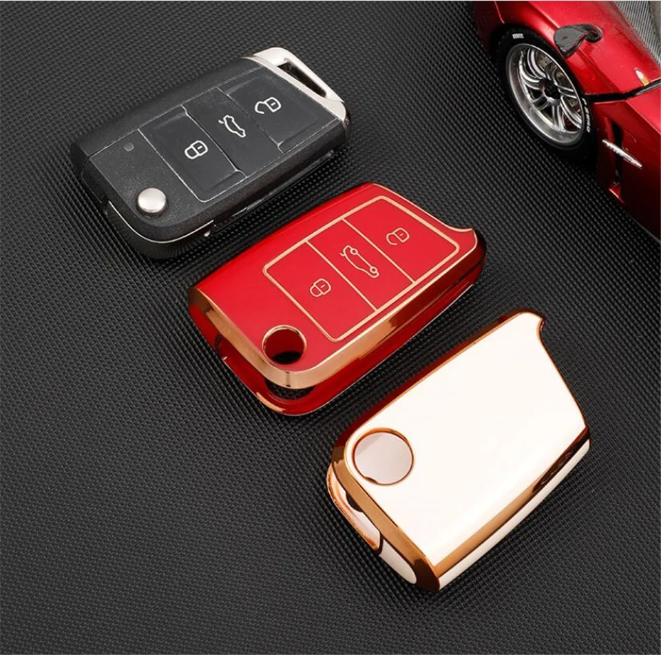 Чехол для автомобильного ключа из ТПУ для Volkswagen VW Polo Golf 7...