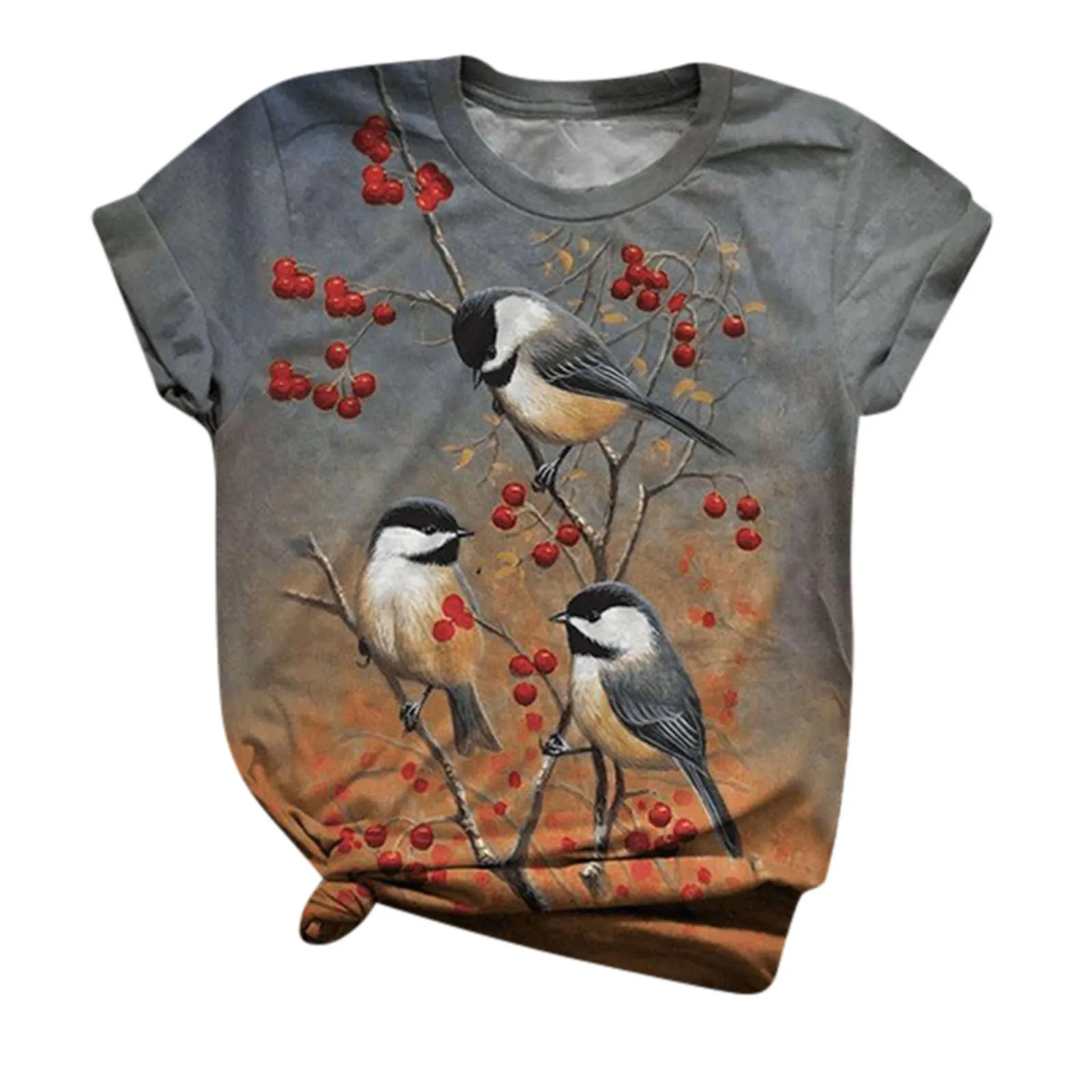 Женские футболки в стиле Харадзюку, летние женские футболки с коротким рукавом и принтом птиц, топы с круглым вырезом, футболка, женские футболки