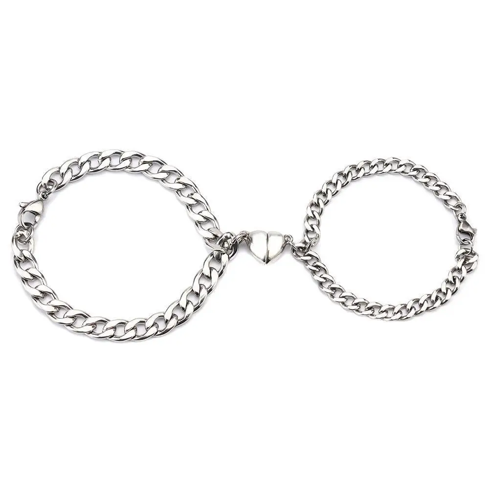 2 шт., магнитный браслет из нержавеющей стали с подвеской в виде сердца