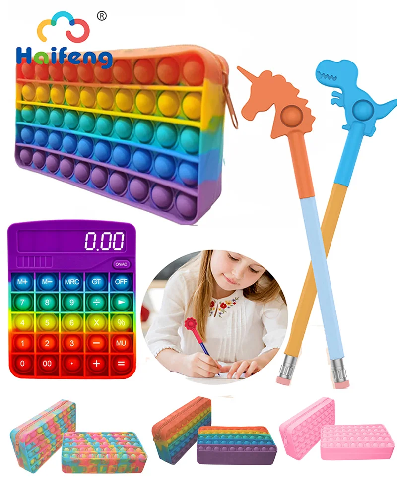 2в1 новый большой чехол-карандаш Popete Pops Fidget Toys Push Bubble, детский антистресс, набор для сжимания игрушек, поп-ручка-калькулятор, кепка, чехол-карандаш, игрушки для детей