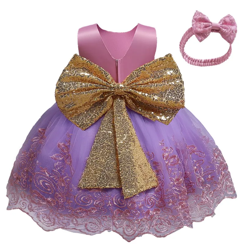 Платье для маленьких девочек с большим бантом, цветочное кружевное вечернее платье принцессы для детской юбки-пачки, детская одежда для дня рождения, элегантное вечернее платье
