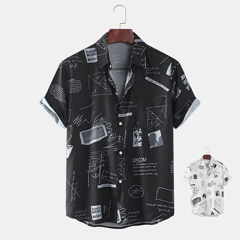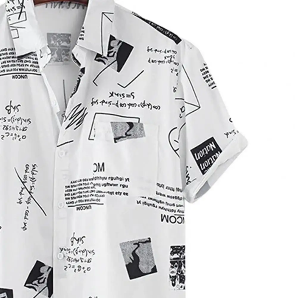 Стильная Пляжная рубашка с принтом граффити с короткими рукавами для мужчин, удобная для кожи, однобортная Повседневная Гавайская модель с лацканами