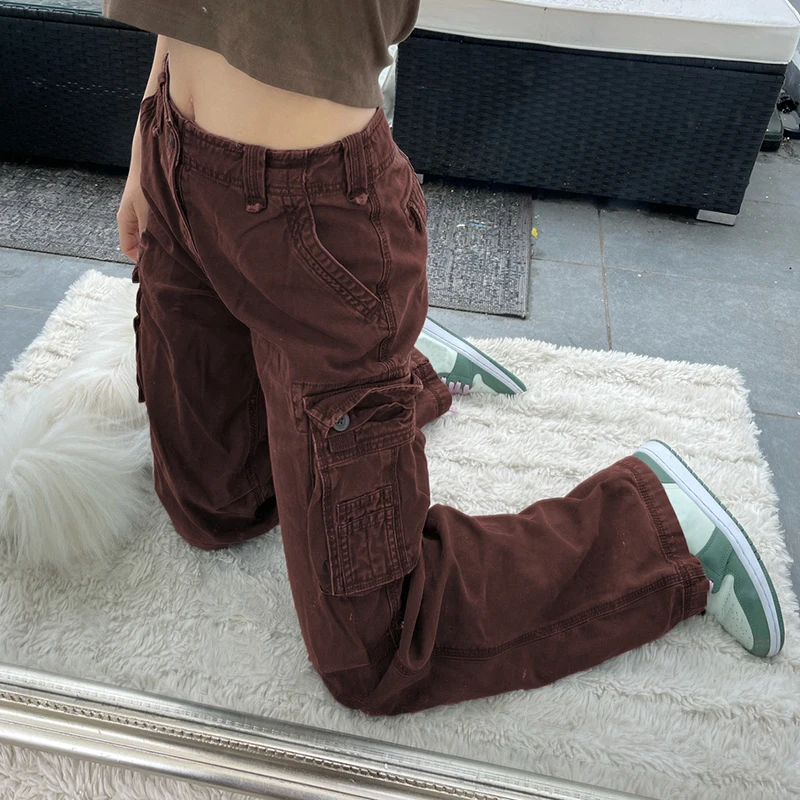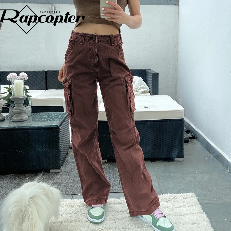 Джинсы Rapcopter мужские с большими карманами, повседневные брюки-карго с завышенной талией, базовые штаны, уличная одежда в стиле Харадзюку, 90-х