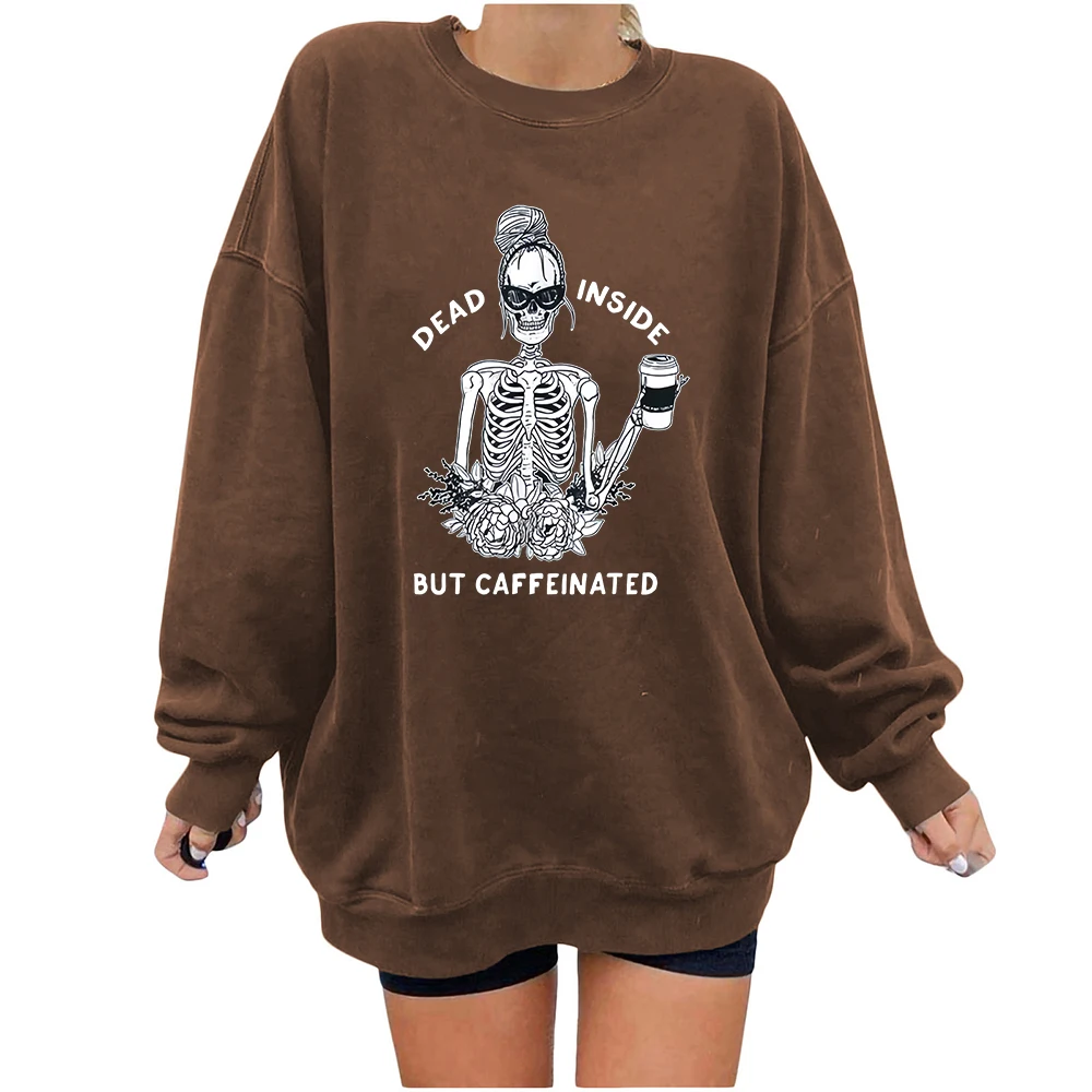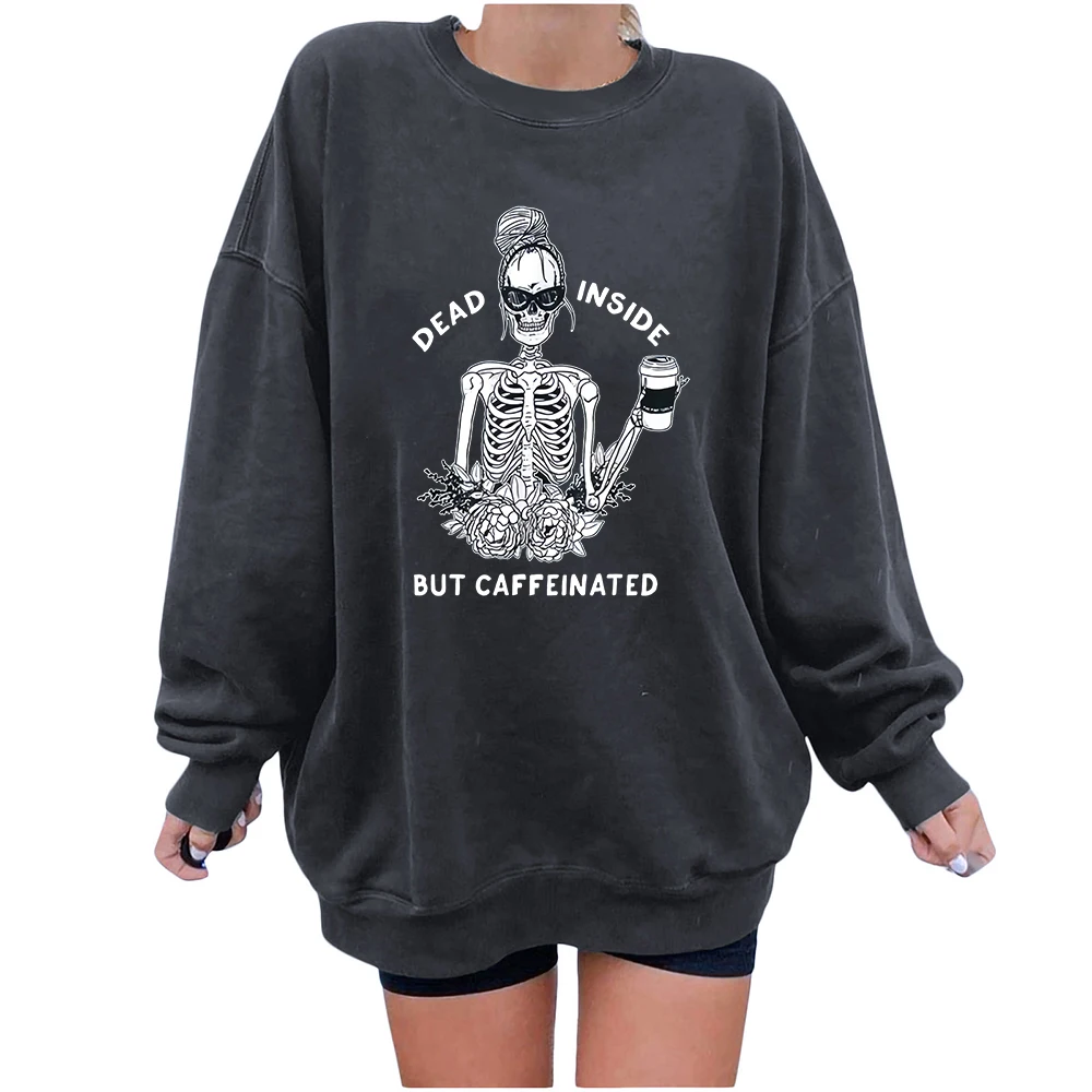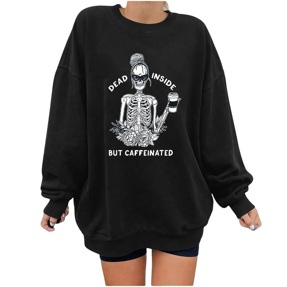 Забавная Женская толстовка Dead Inside But Caffeinated, костюм на Хэллоуин, свитшот для женщин, свитшот с графическим принтом в виде скелета и кофе