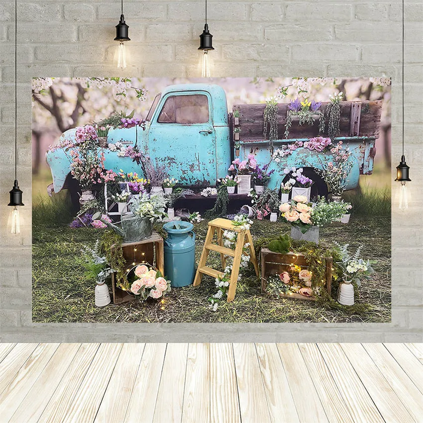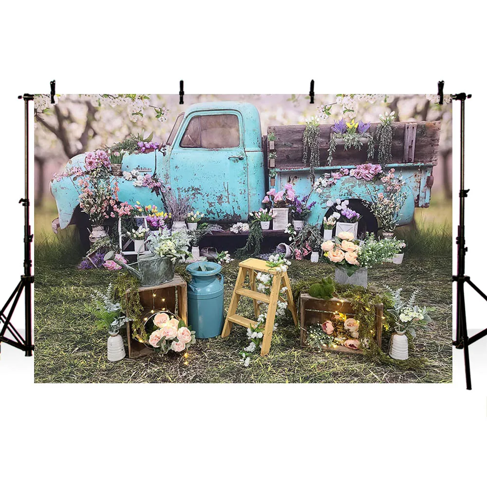 Фон Avezano для фотосъемки с изображением голубого цветка грузовика для улицы пастбища для маленьких девочек портретный фон для фотостудии реквизит для фотосъемки