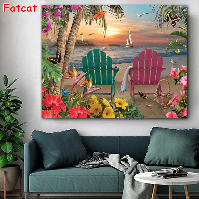 Алмазная живопись, квадратные стразы, 5D Вышивка крестиком, остров рай, мозаика для домашнего декора, подарок PP2491