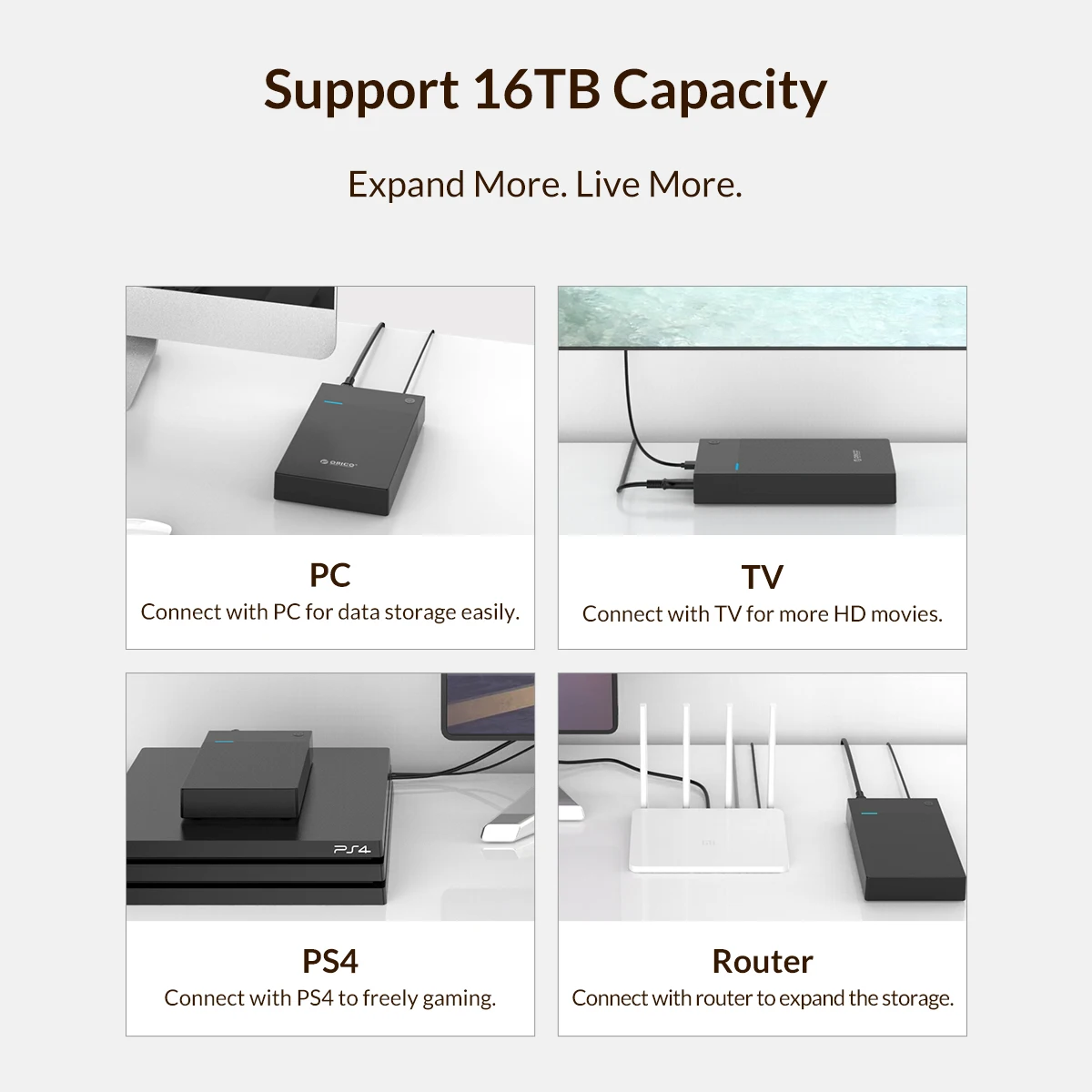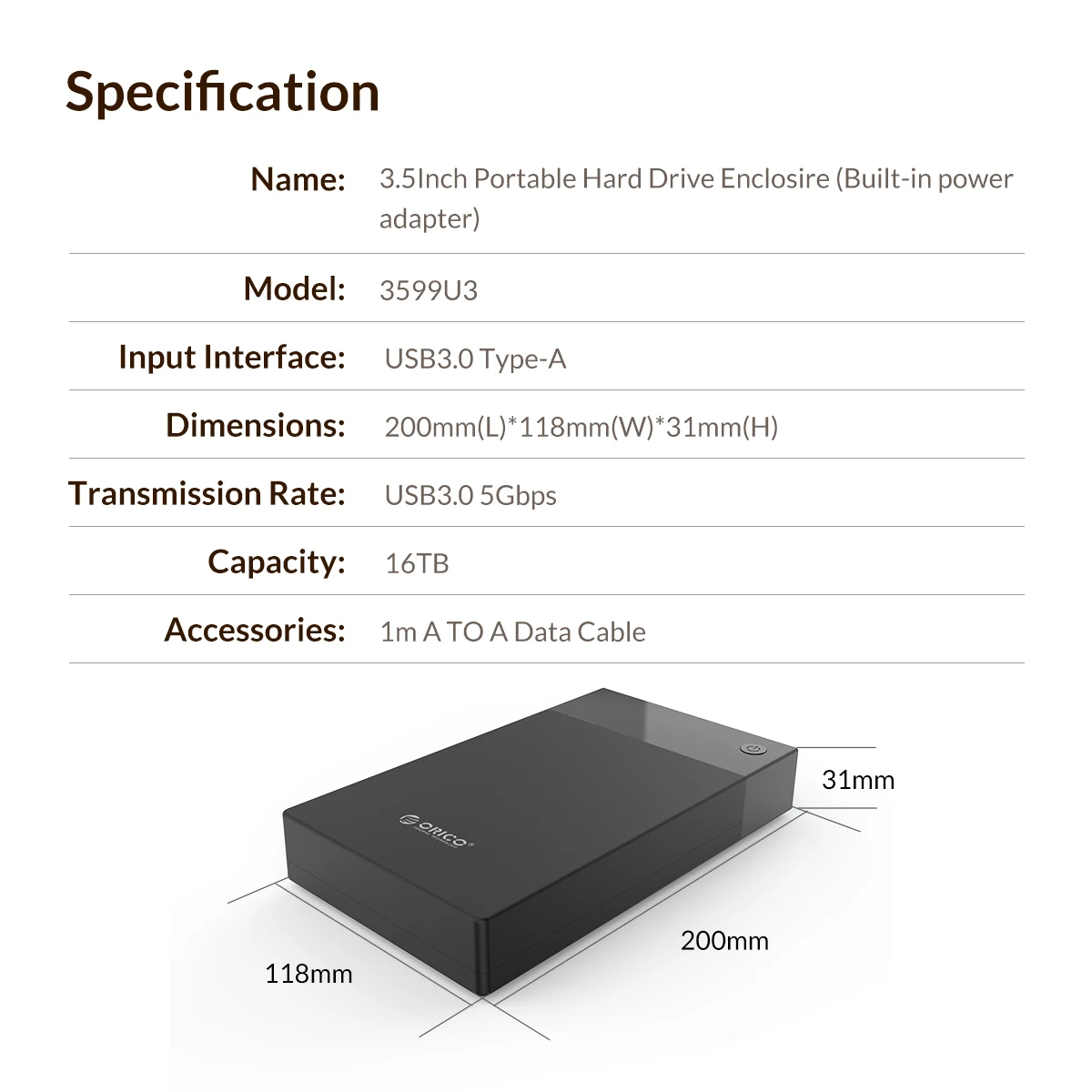 Чехол ORICO для жесткого диска 3,5 дюйма со встроенным питанием 12W1A портативный корпус для жесткого диска SATA к USB 3,0 поставка до 16 ТБ поддержка UASP-бокса