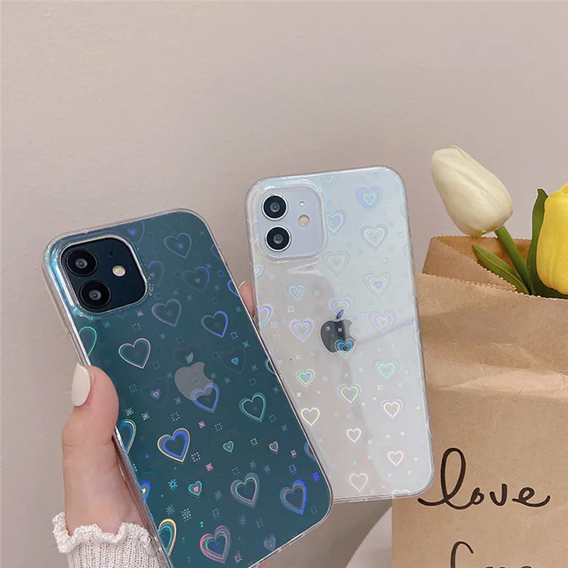 Голографический чехол с милым сердцем для телефона Iphone 11 12 13 ...
