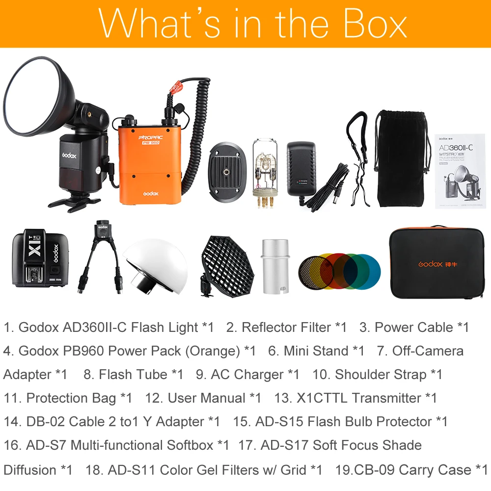 Godox AD360II-C TTL Power ful Speedlite Flash + PB960 блок питания оранжевый + X1T-C TTL передатчик + цифровой софтбокс + CB-09 сумка для переноски