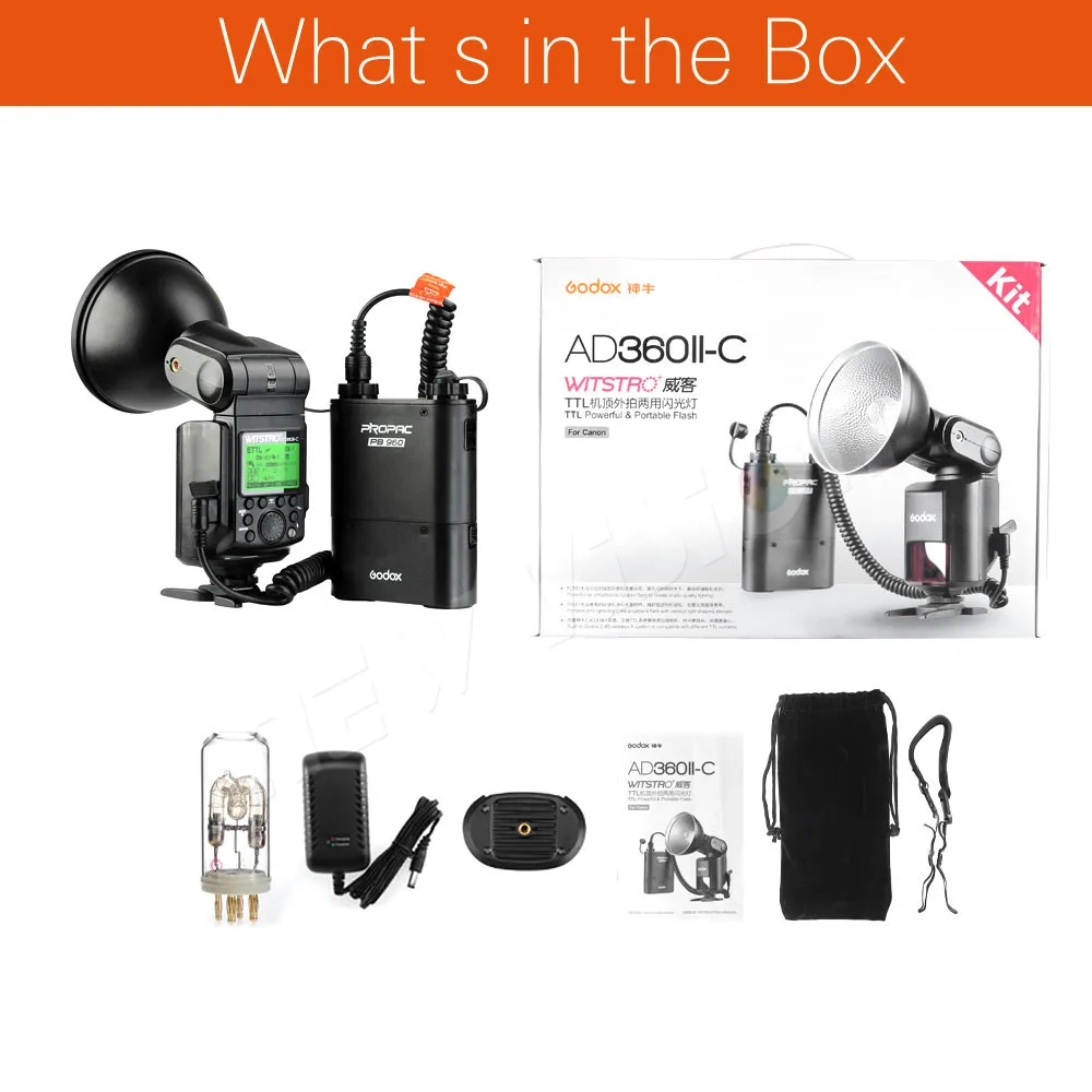 DHL Godox Witstro AD360II-C TTL 360W GN80 Мощная Вспышка Speedlite для камеры Canon EOS с литиевой батареей 4500 мАч PB960