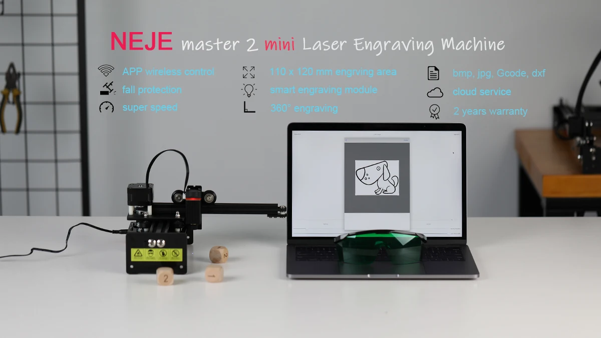 Мини-гравировальный принтер NEJE Master 2, 20 Вт, с защитой рулона
