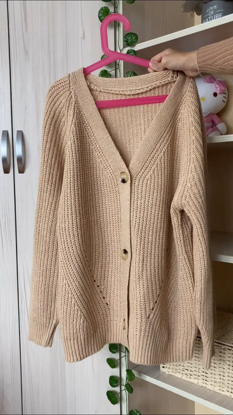 Модный вязаный кардиган, свитер, женское осеннее Свободное пальто с длинным рукавом 2021, повседневные плотные женские топы на пуговицах с V-образным вырезом 16870