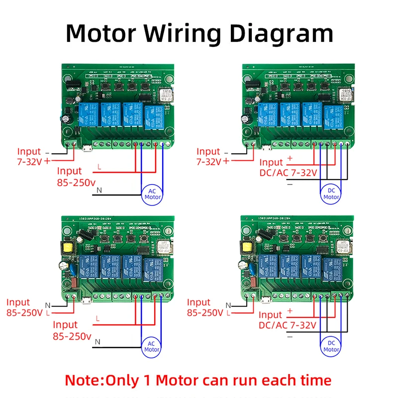 Контроллер двигателя умного переключателя света Wifi 4CH, DC5V 12V 24V 32V AC110V 220V, 4-канальное реле RF433mhz для Alexa Google Home, eWeLink