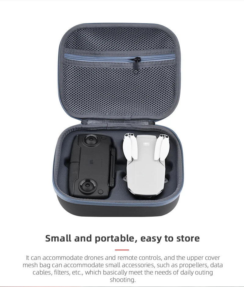 1. Хорошая текстура, высокое качество, Выберите высококачественную полиэфирную ткань, 2. Удобная ручка для переноски, не повреждает руки, легко носить с собой, 3. Двусторонняя молния, подходит для улицы, прочный и не ржавый, 4. Точный Дизайн внутренней формы, внутренний мешок разработан с дышащей эндопластичной сеткой. Описание: Материал: полиэстер Применимые модели: для DJI Mavic Mini/Mini SE Цвет: серый Вес нетто: 233 г Размер продукта: 22*8,5*18 см Упаковочный лист: 1 шт. чехол для хранения Примечание: 1. Не включает Дрон и пульт дистанционного управления, 2. Перевод ед. измерения: 1 см = 10 мм = 0,39 дюйма, 3. Допускается погрешность в 1-3 мм из-за ручного измерения. Пожалуйста, убедитесь, что вы не возражаете перед заказом, 4. Из-за разницы между различными мониторами изображение может не отражать фактический цвет товара, пожалуйста, убедитесь, что вы не возражаете перед заказом, спасибо!