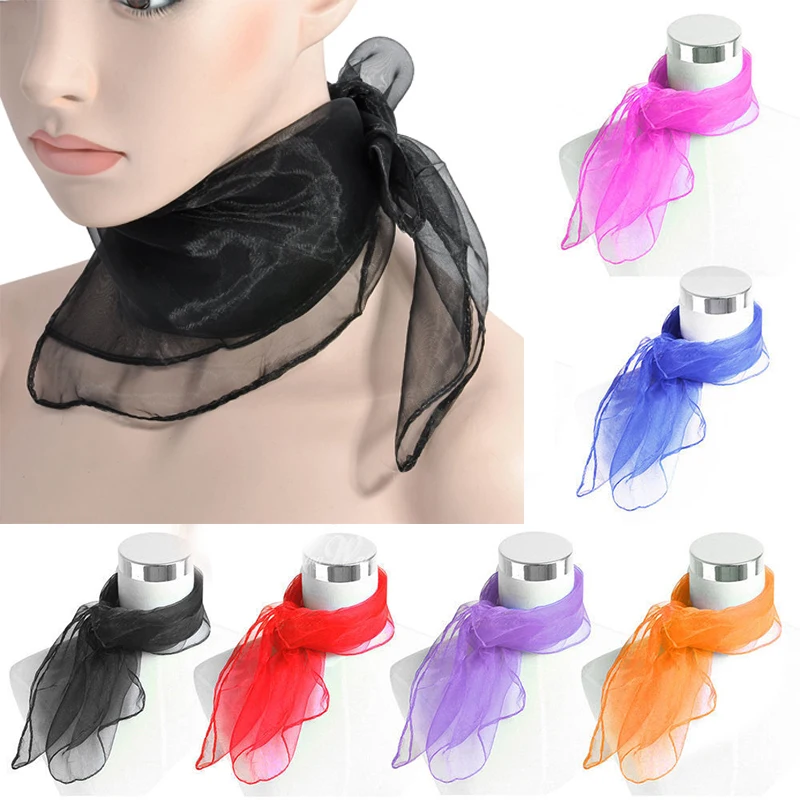 Женские яркие квадратные шарфы, гимнастические полотенца, маленькие шелковые шарфы для танцев, красные, желтые, фиолетовые, зеленые шарфы, шифоновый шейный платок