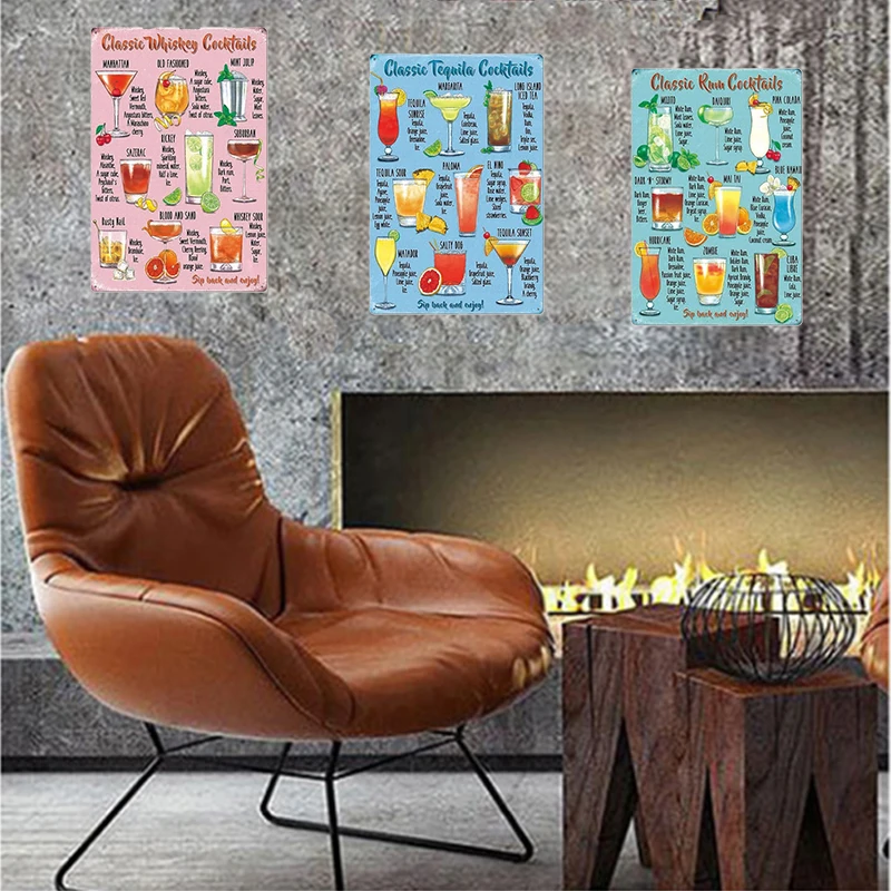 Классическая текила, бренди Ром, водка джин для виски и коктейлей, винтажные Ретро знаки, украшение для паба, бара, металлическая пластина, плакат, жестяная вывеска