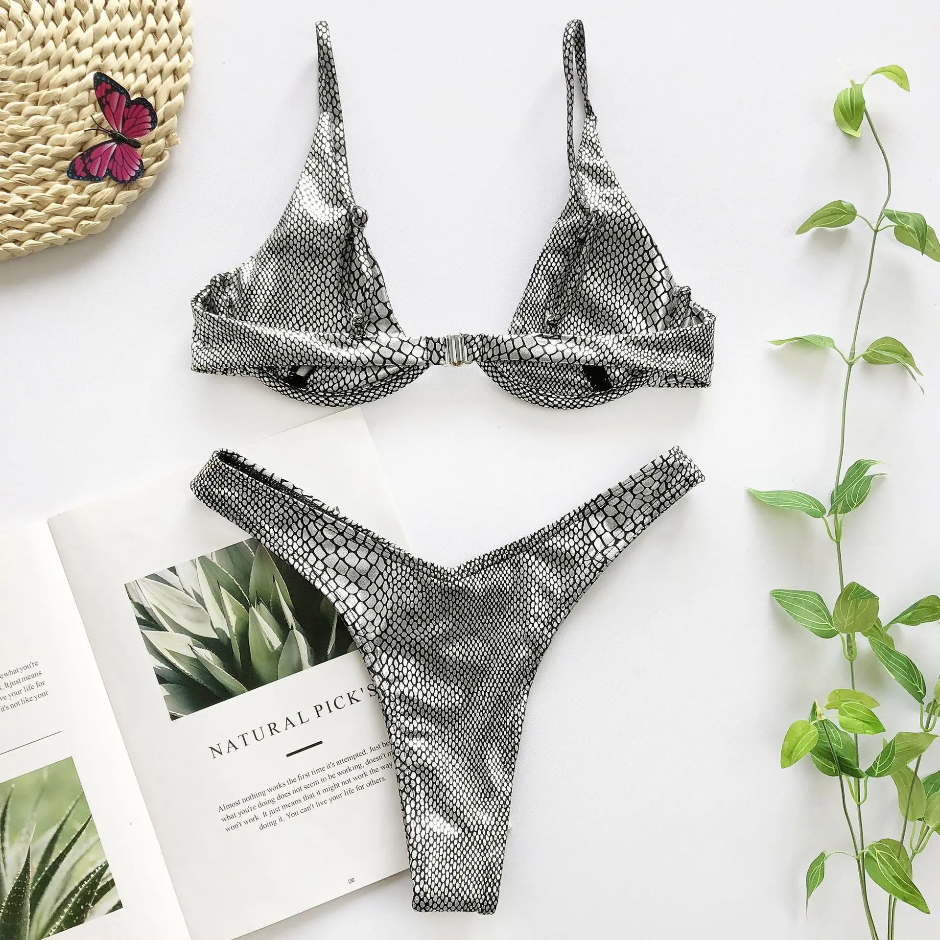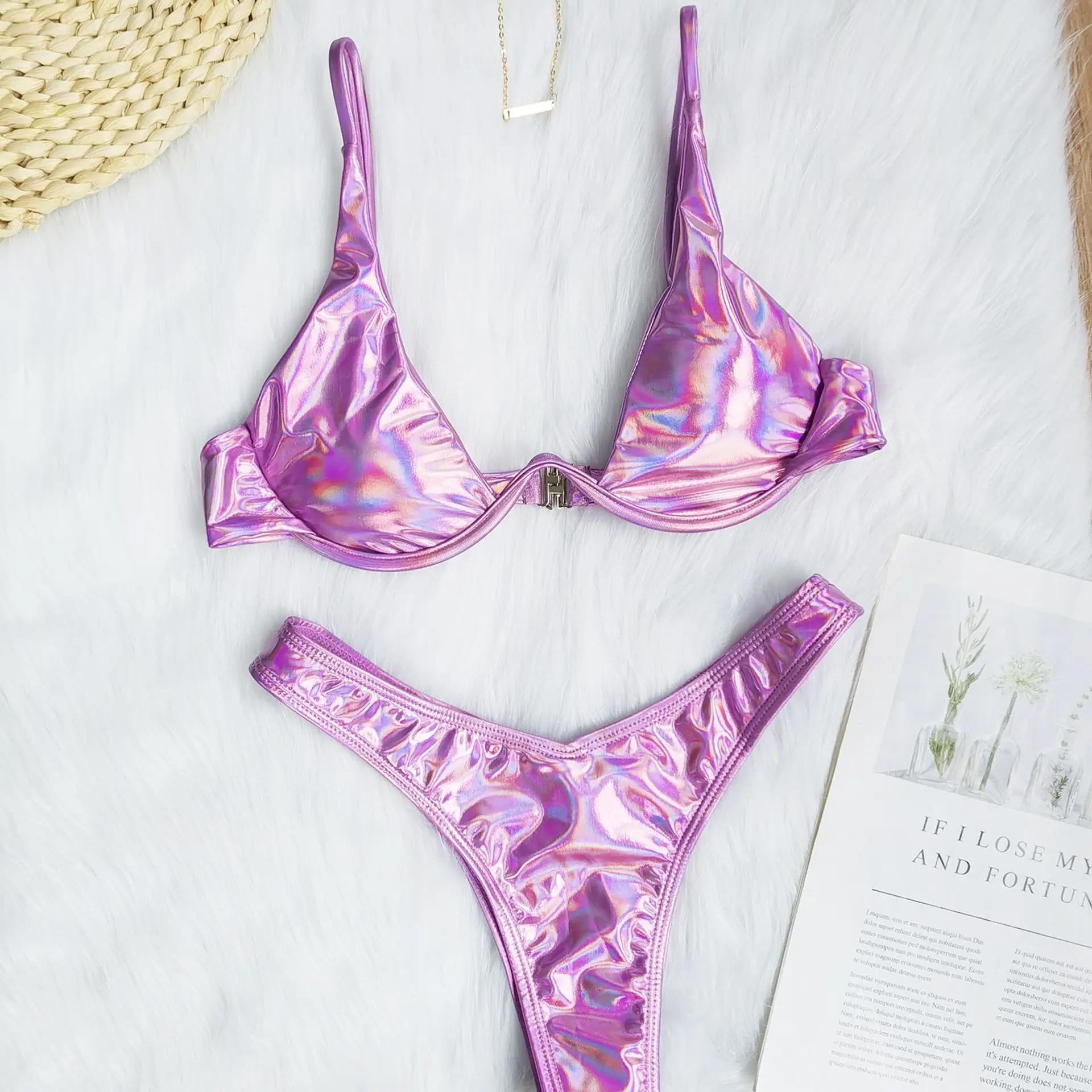 Соблазнительный микро-бикини 2021, купальник пуш-ап, Женский Блестящий бикини, купальник на косточках, Женский комплект из двух предметов, купальный костюм, Новинка