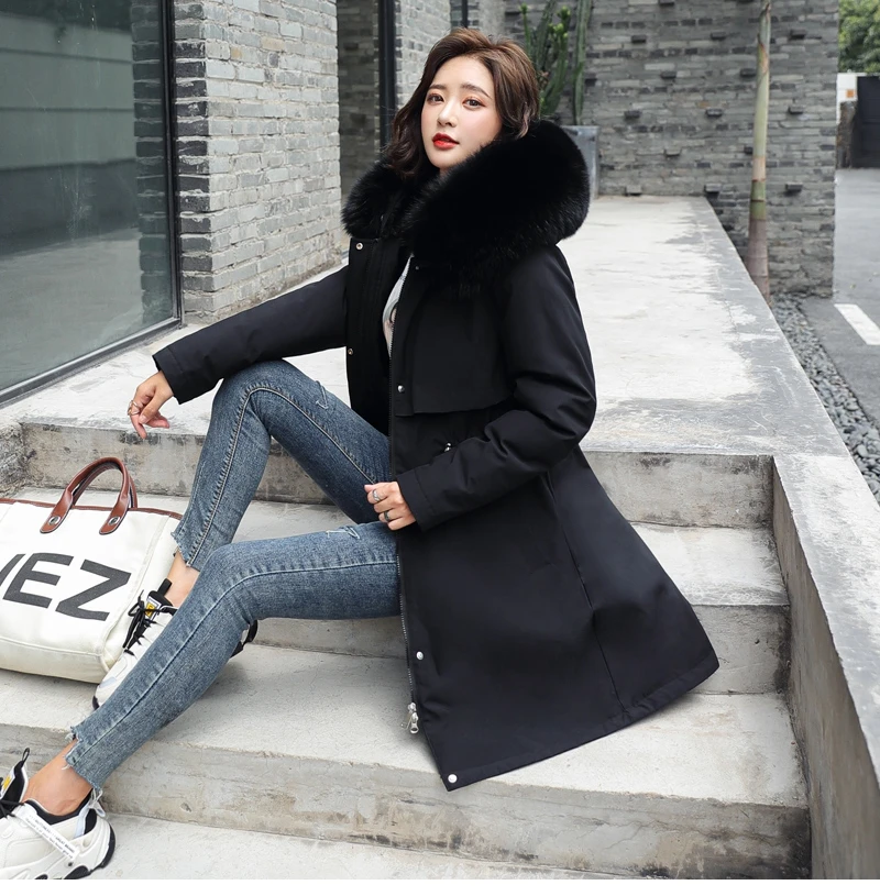Куртка женская зимняя теплая с меховым воротником и капюшоном, 2020