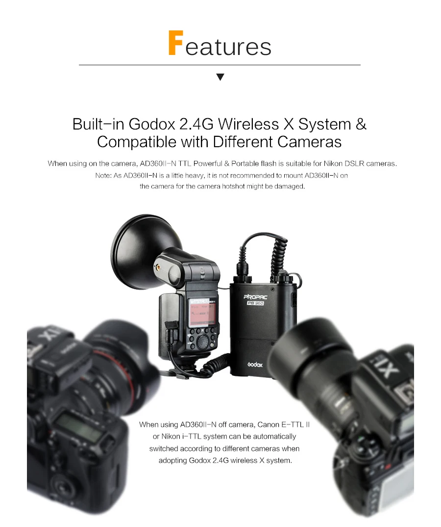 -Совместимость с мощной вспышкой Godox WITSTRO AD-180 AD-360 AD360II-C