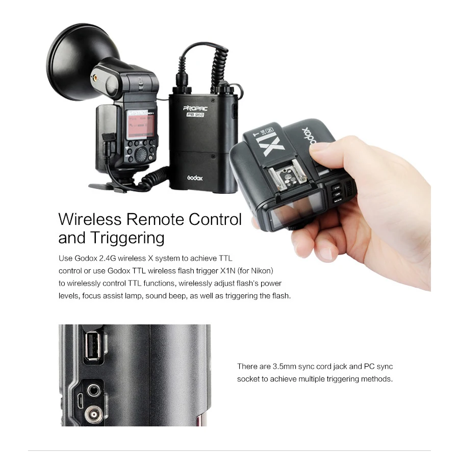 Совместимая Беспроводная система TTL: полностью поддерживает Canon E-TTL II, Nikon i-TTL и другие системы TTL в Godox 2,4G wireless X system. Работает как главный или рабочий блок в беспроводной флэш-группе, отлично подходит для управления и эффекта светильник.