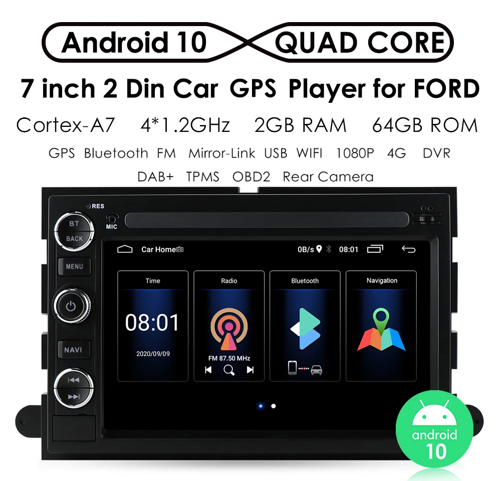 Автомобильный DVD-плеер Android 10, 7 дюймов, 64 Гб ПЗУ, для Ford 5...