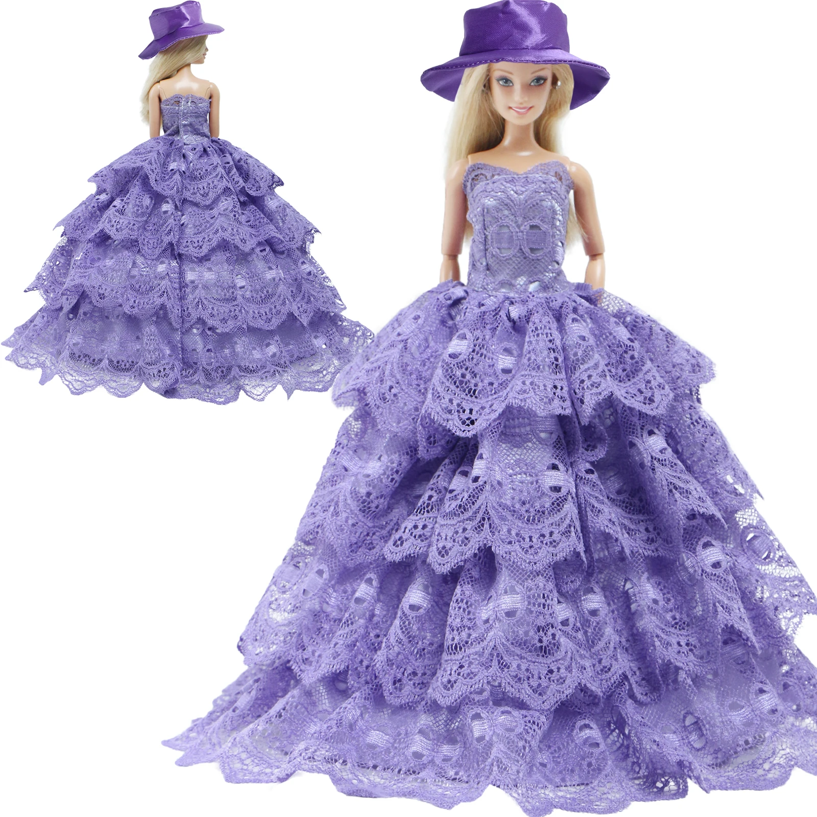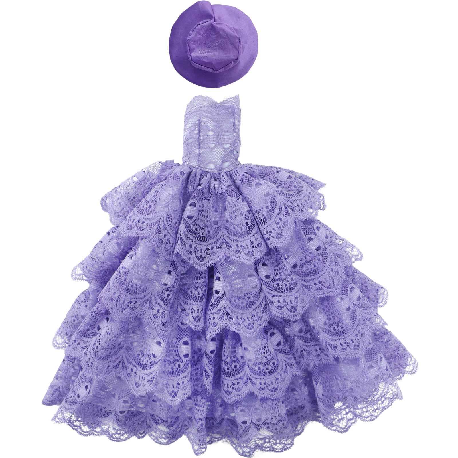 1 комплект фиолетового платья для куклы BJDBUS, свадебное кружевное платье с шляпой и юбкой принцессы, Одежда для куклы Барби, аксессуары для девочек, игрушки сделай сам