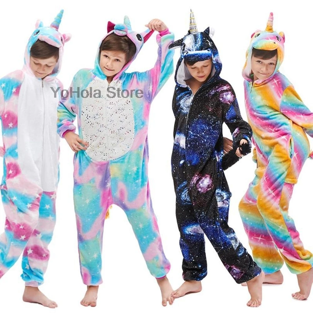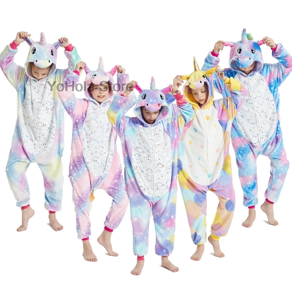Детские пижамы-кигуруми в виде единорога, Мультяшные Кигуруми для м...