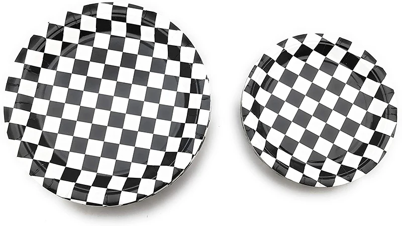 Одноразовые салфетки в черно-белую клетку для гоночной вечеринки