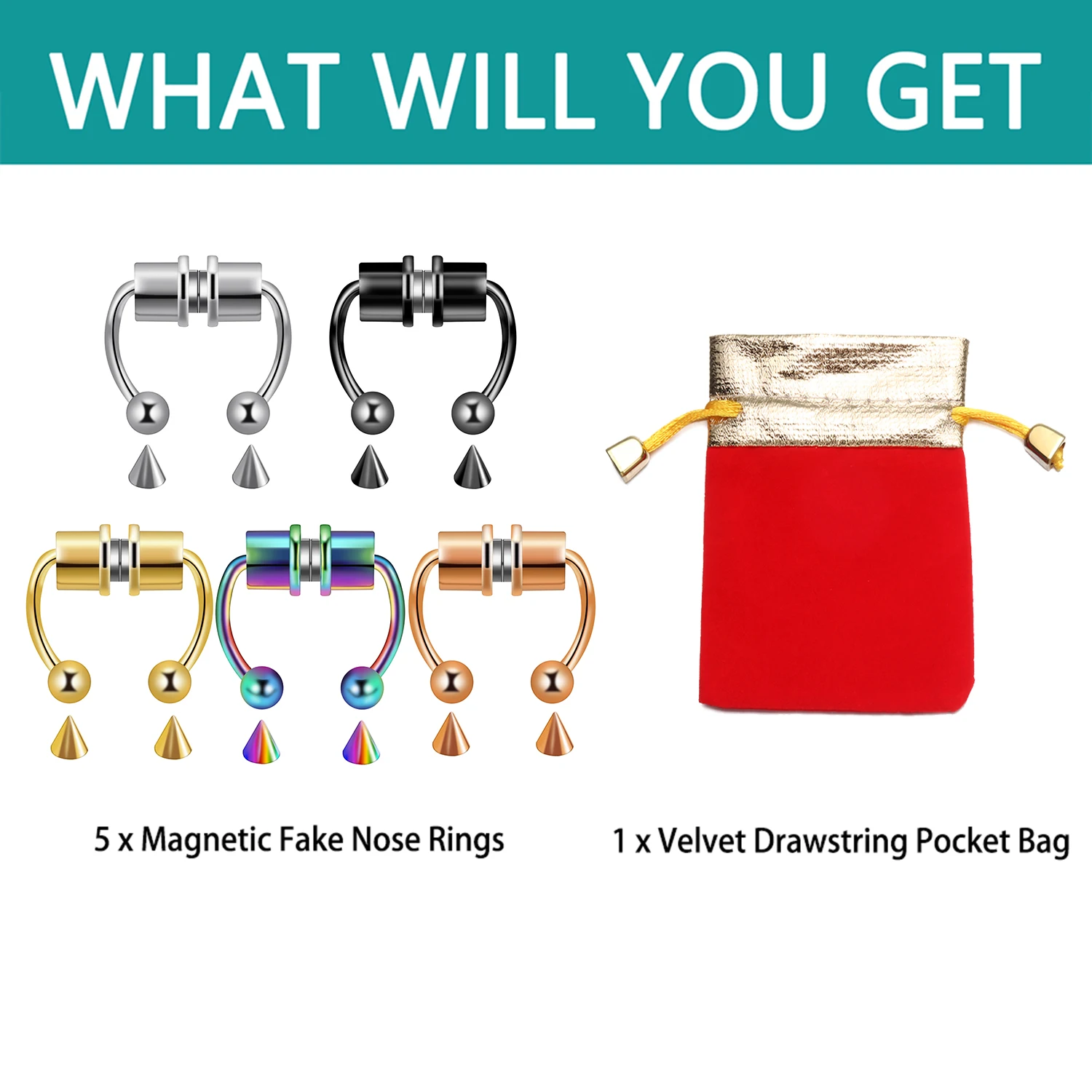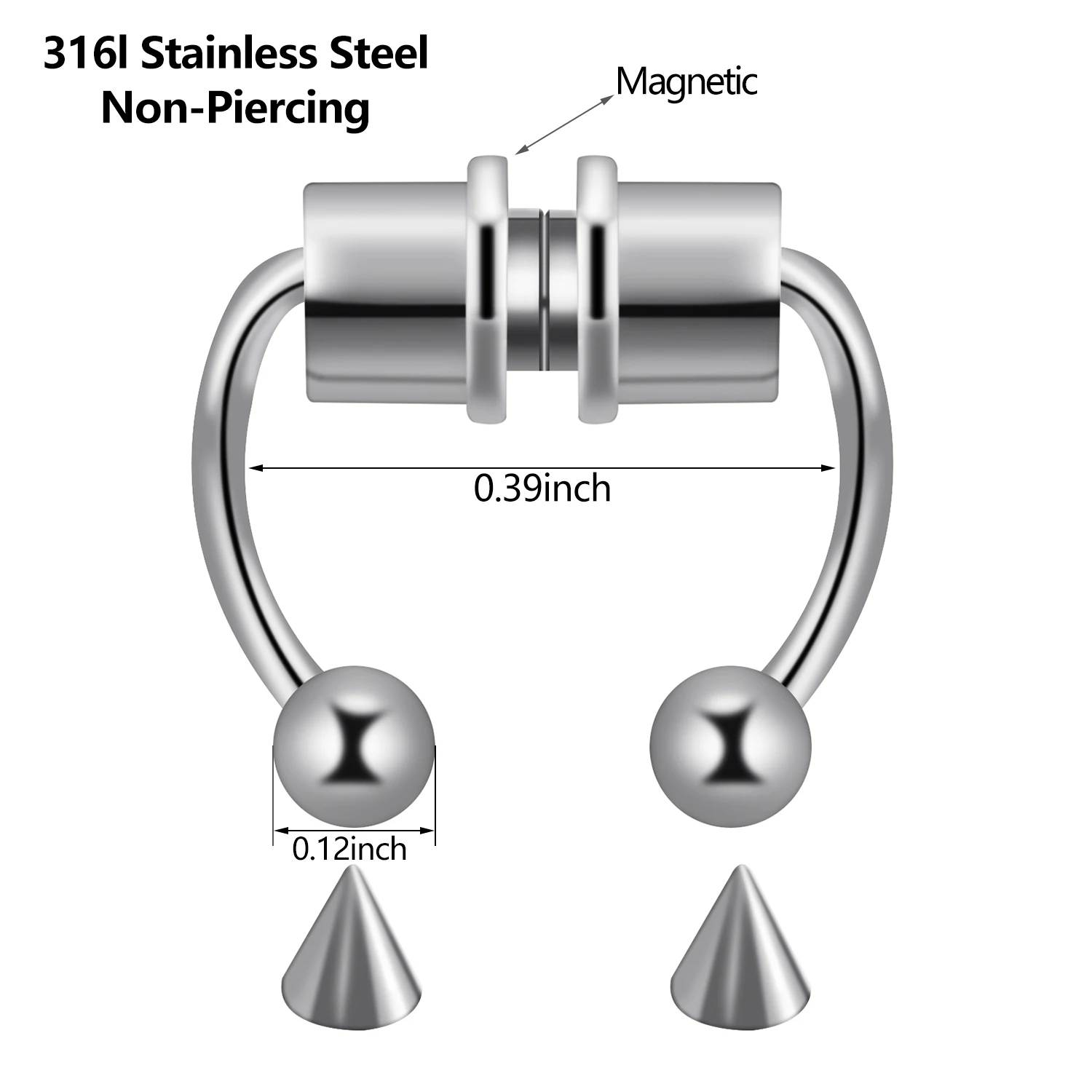 Магнитные кольца в нос, из нержавеющей стали 316L, U-образные кольца для перегородки, искусственная перегородка, не пирсинг, для женщин и девочек