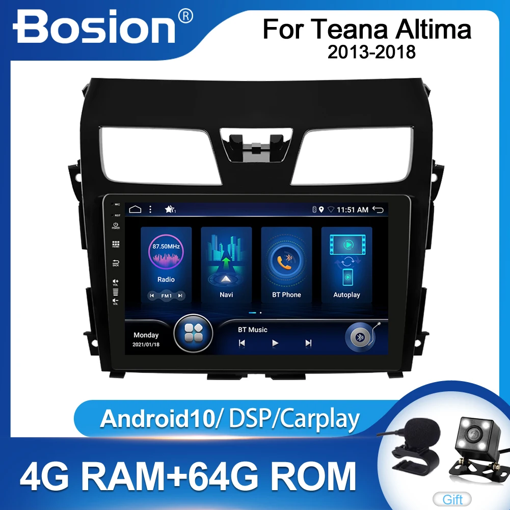 Bosion Android 10 10 дюймов Автомобильный радиоприемник мультимедийный видеоплеер GPS-навигация для Nissan Teana Altima 2013-2018 4 Гб + 64 Гб DSP SWC