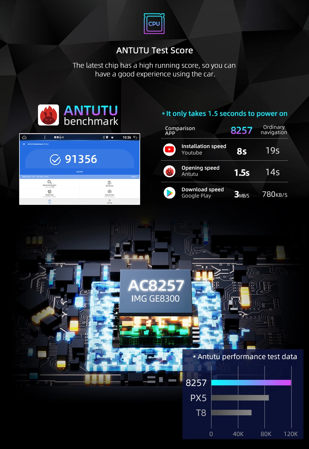 ● Чистая ОС Android 10,0● ОЗУ 4 Гб + ПЗУ 64 ГБ● CPU:PX6 Cortex 3399 двухъядерный процессор A72 + четырехъядерный процессор A53 2 ГГц● PX6 поддерживает HDI-совместимый выход● PX6 является лучшим чипом на рынке в настоящее время, он работает быстрее, чем все другие типы. Балл ANTUTU составляет 117986, что лучше, чем T3.MTK, PX5 и всех других типов 4 + 64G на рынке.● DSP = Система цифрового усилителя (версия 5618-B063). DSP делает качество звука автомобиля лучше, чем раньше. Чип dsp AKM7388 + TDA7803. Качество звука намного лучше, чем в других версиях, другие бренды DSP, и коэффициент шумоподавления может достигать 115 дБ