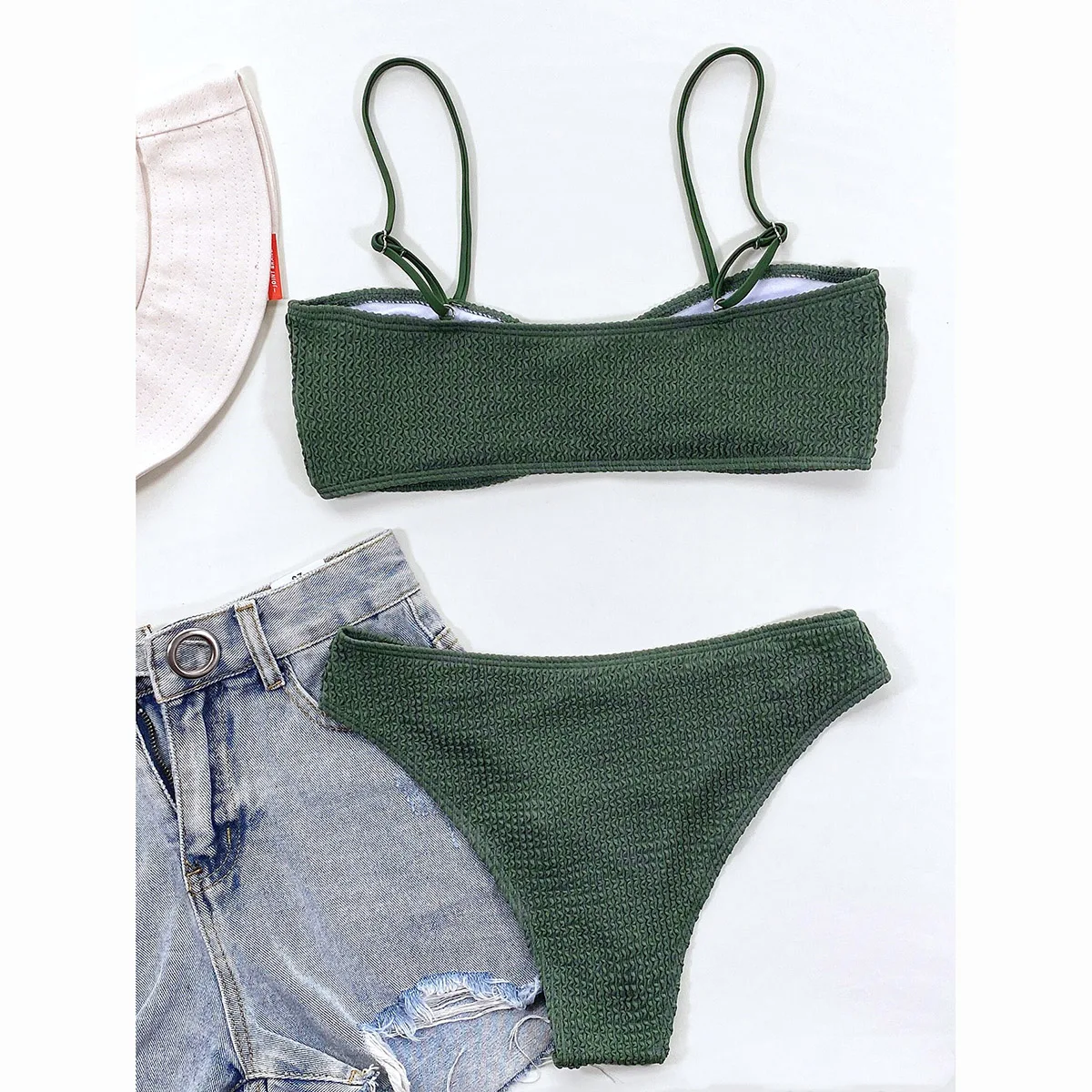 Бикини бандо 2022, соблазнительный женский купальник, однотонный ку...