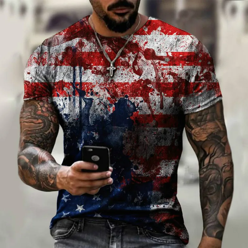 Футболка мужская с принтом американского флага, повседневный спорти...