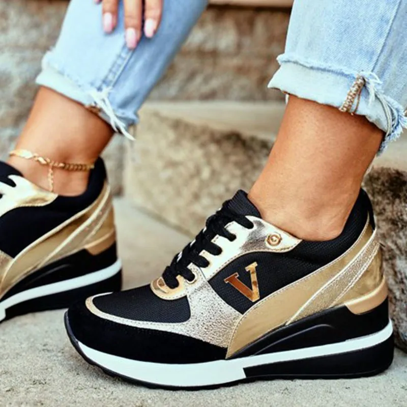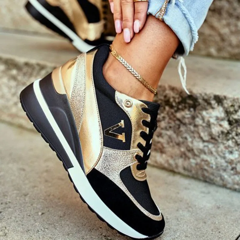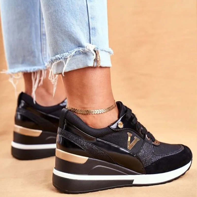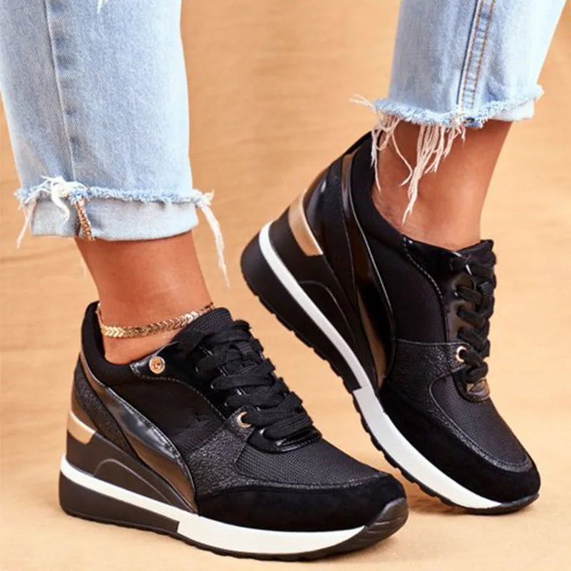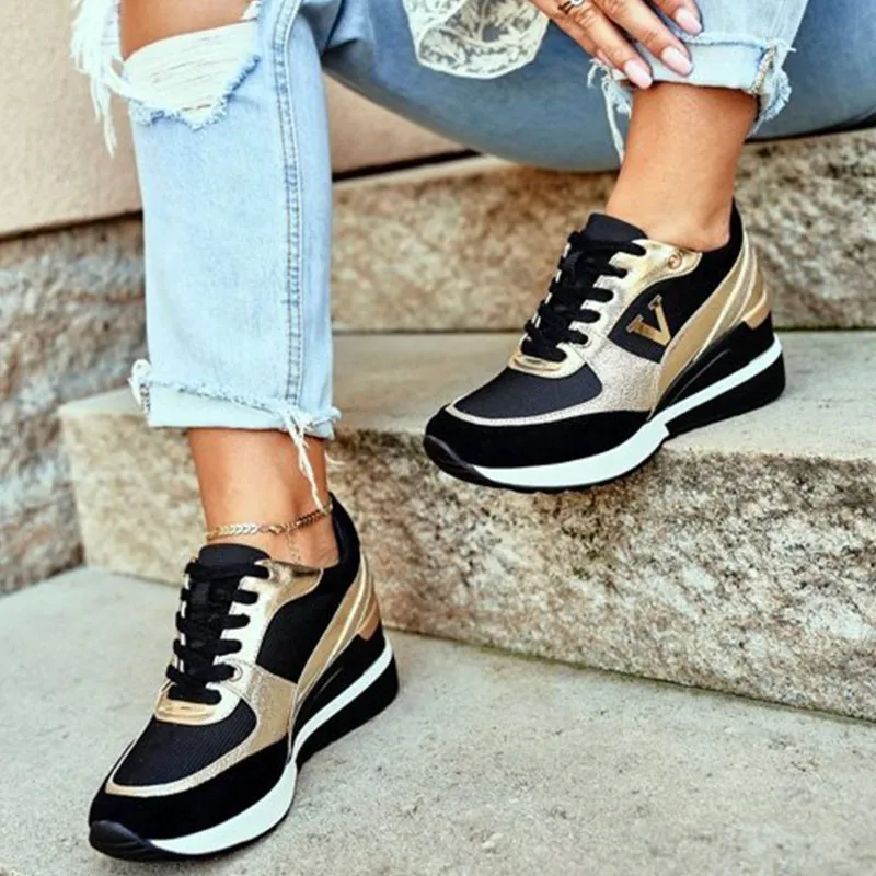 Женские кроссовки на танкетке с принтом, дышащие уличные спортивные туфли на шнуровке, нескользящая обувь