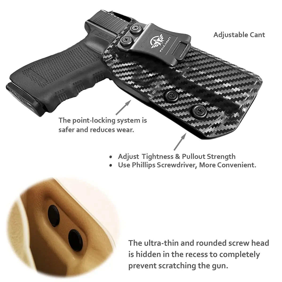 Носить с собой с уверенностью: пожалуйста, не стесняйтесь использовать Полюс. Ремесло Портативный Скрытая кобура для защиты для Glock 17 кобура. Это наш третьего поколения углеродного волокна Kydex кобура IWB идеально подходит для Glock 17 / 22 / 31 (Gen, для детей от 1 года до 5 лет) кобуре. Он не только высокоточный, но также прочный и прочный, может быть скрыт и портативный, так что вы можете защитить себя в любое время и в любом месте.