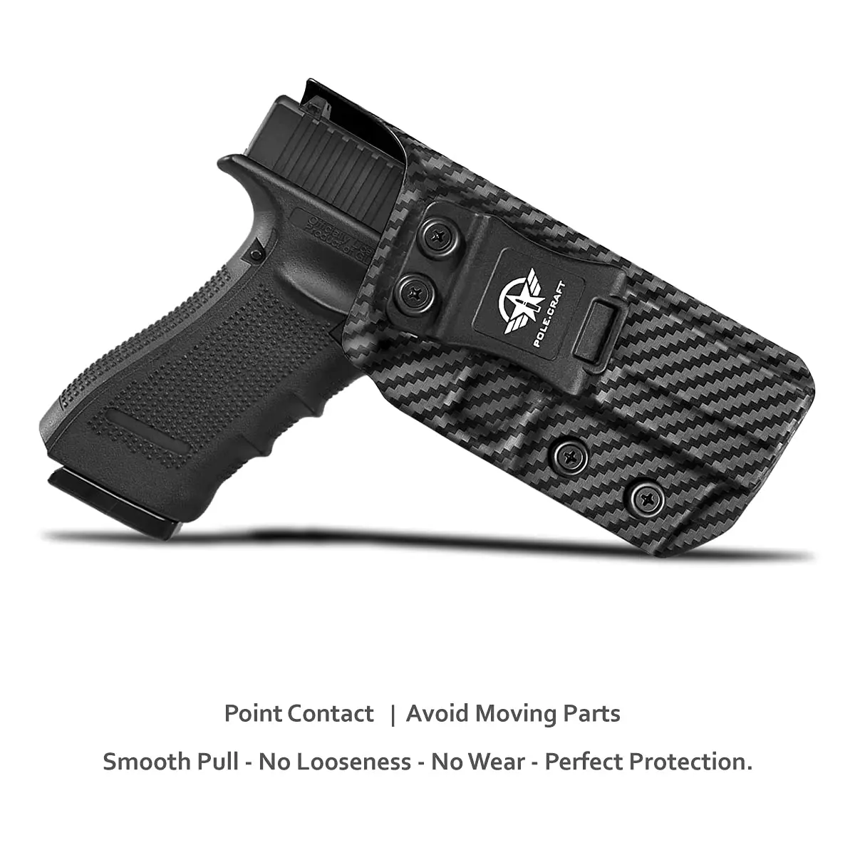 Полюс. Ремесло для Glock 17 кобуре IWB ручной работы изготавливается из прочной 0,8 "углеродного волокна Kydex. Он не только водонепроницаемый, устойчивый к поту, но также обладает высокой прочностью, высокой прочностью, ударопрочностью, износостойкостью и устойчивостью к старению. Может использоваться в различных условиях. Таким образом, вы всегда можете положиться на него, чтобы сохранить свою жизнь.