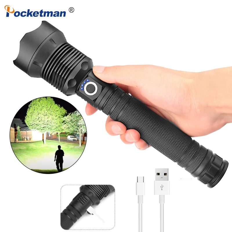 Мощный светодиодный фонарик с использованием лампы XHP70.2 светодиодный фонарь с максимальной мощностью до 30000 люменовУвеличьте 1*18650 или 1*26650 аккумуляторный отсек, чтобы увеличить время работы.Дисплей емкости аккумулятора, телескопический зумМикро-usb для компьютера usb, Автомобильный USB, usb-разъем для зарядки, зарядный фонарикИзготовлен из авиационного алюминиевого сплава прочный HAIII военный класс Жесткий анодированныйВодонепроницаемый в соответствии с IPX-6, водостойкий, может использоваться в дождливую погоду, но не может положить его в водуПодходит для работы, охоты, альпинизма, рыбалки, кемпинга и активного отдыха и т. д.Ударопрочный до 2 метров